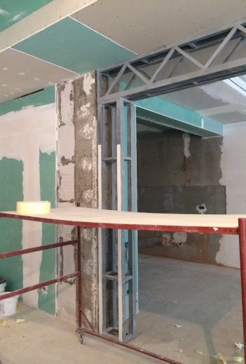 - Elevator shaft erection, elevator delivery and installation for 4 floors.