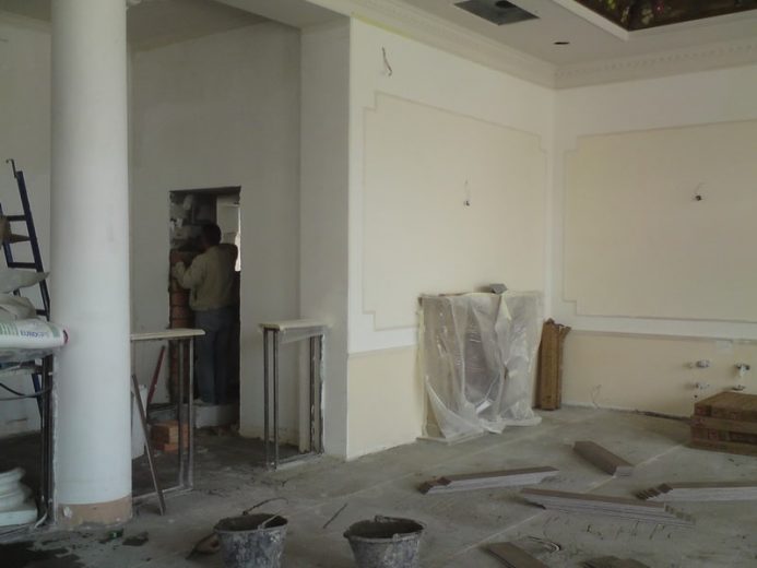 - New walls and partitions construction, metal structures fabrication and erection at mezzanine floor