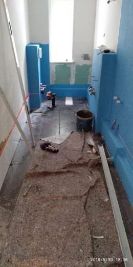 - устройство двухкомпонентной гидроизоляции в санузлах